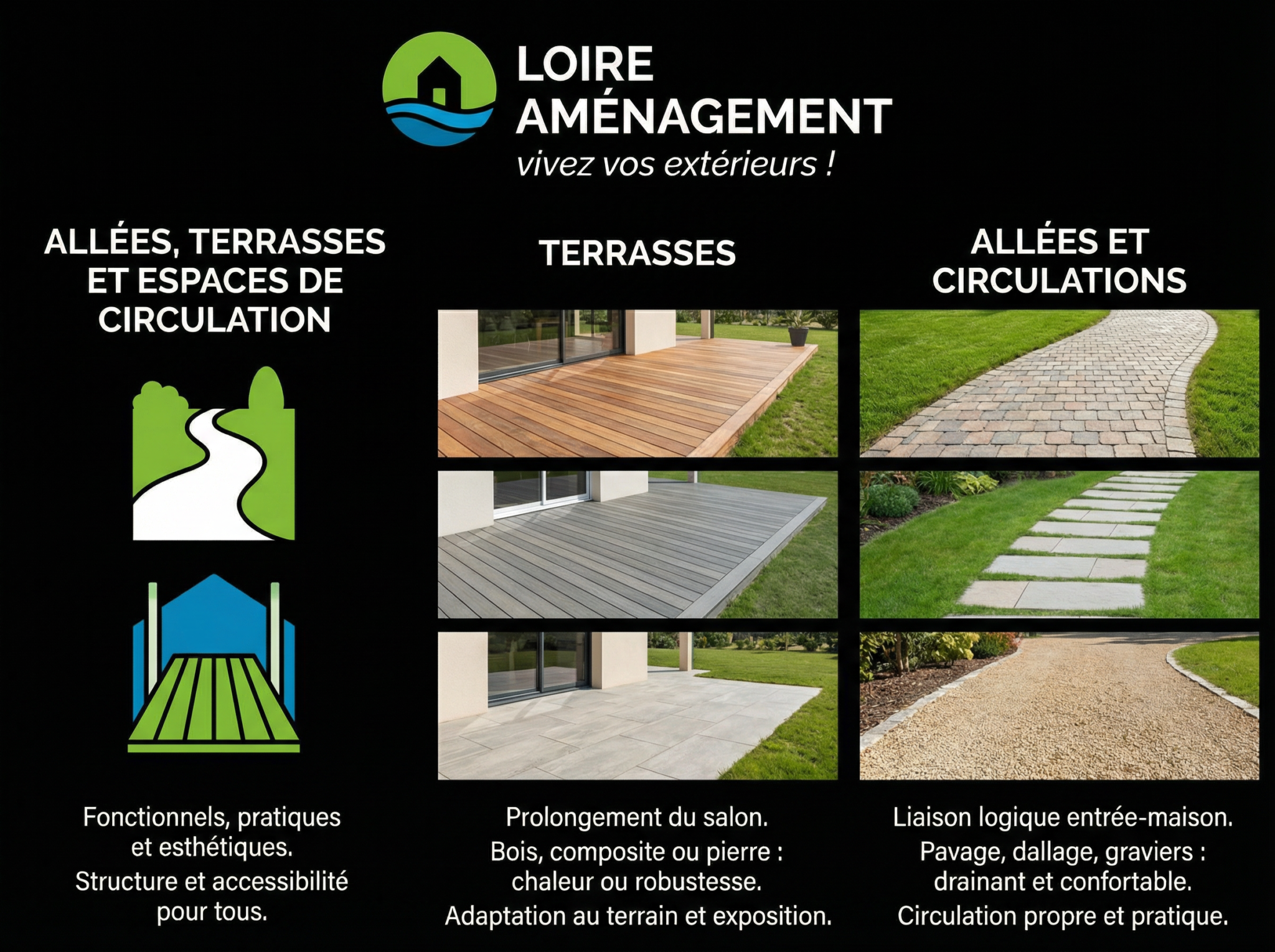 Allées, terrasses et espaces de circulation : fonctionnels, pratiques et esthétiques